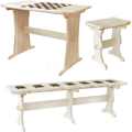 Для оснащения бани используют скамейки, лавки со спинкой и без, табуреты, подставки под ноги и т.д. Самая незаменимая и востребованная мебель в каждой бане — скамейка. Удобная конструкция эргономичной формы помогает полноценно расслабиться и отдохнуть после парилки.