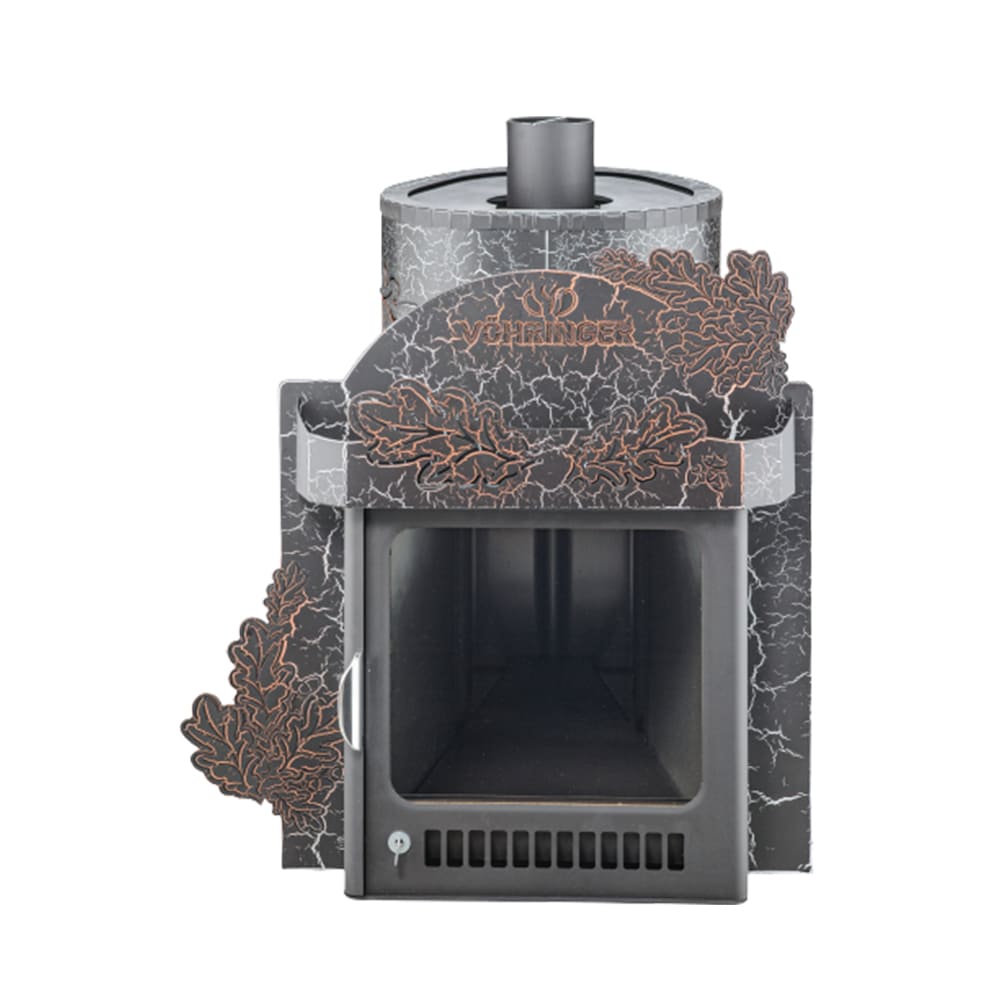 Дровяная печь «Ферингер Малютка (ПФ) Дубы» имеет оптимальный размер и мощность для семейных бань, а главное — создает идеальные условия для парения в режиме русской бани. Данная модель предназначена для парных объемом до 18 м3. Топка печи выполнена из жаростойкой нержавеющей стали AISI439, толщина топки 3-4 мм.