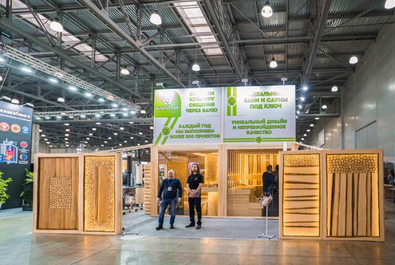 В этом году на стенде «Благопар» мы представили четыре проекта парных, которые вызвали особый интерес у посетителей. Парные были выполнены из высококачественных материалов, произведенных нашей компанией, включая необрезную доску, липовую вагонку, горбыль и можжевельник.