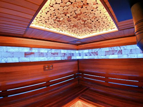 Одна из самых красивых и богато выглядящих парных – парная из канадского кедра! Потрясающий внешний вид, шикарный запах, дорогой декор из соли и можжевельника, декоративные подсветки – всё, что только может быть в современной сауне!