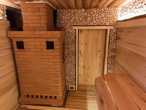 В итоге, эта парная обладает просторным и светлым интерьером с уникальными текстурами и элементами декора. Комбинация нескольких видов дерева, традиционной кирпичной печи и стильной подсветки создает атмосферу, где посетители могут наслаждаться расслабляющими сеансами парения и природной красотой материалов.