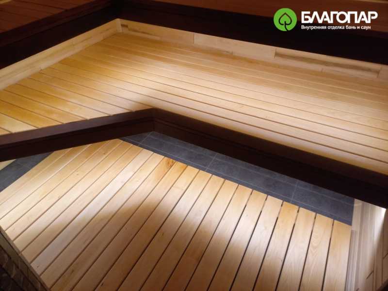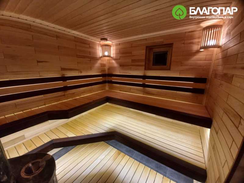 Потолок и полки выполнены из липы сорта А/Э. Окантовка полков и подспинников — из термолипы. Липа долго сохраняет свои природные качества, не выделяет смолу и, благодаря низкой теплопроводности, не обжигает тело.